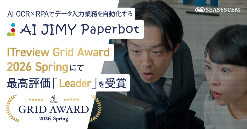 AI OCR×RPAでデータ入力業務を自動化する「AI JIMY Paperbot」が「ITreview Grid Award 2026 Spring」にて最高評価「Leader」受賞